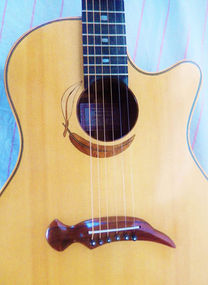 Designed in collaboration with musician and world traveller, Gal Ronen, this is perhaps the most balanced and responsive acoustic guitar I've ever made. The shape of the body probably has a lot to do with it. It was designed so as to have no straight edges, but only curves, which gives it an organic feel. The inlays echo the player's love of nature and of freedom. The rosewood body adds a beautiful, deep, rich tone to the Alpine spruce 'Moonwood' soundboard.